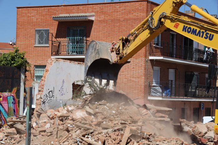 Avanzamos en la mejora del casco antiguo de la ciudad. Hoy se elimina el edificio en ruinas de la calle del Berro», decía el alcalde, Javier Ayala, en lo que significa «un paso más hacia el Distrito Centro que Fuenlabrada merece».