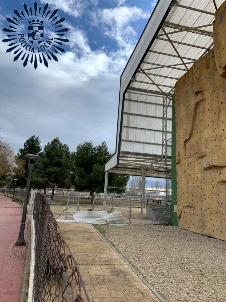 También este martes, los efectivos locales de emergencias, junto a Bomberos, intervenían en la caída de unas tejas de un edificio de la calle Cataluña con Asturias, sin producirse heridos afortunadamente. Por otro lado, y como precaución, se cerraron varios parques del municipio.