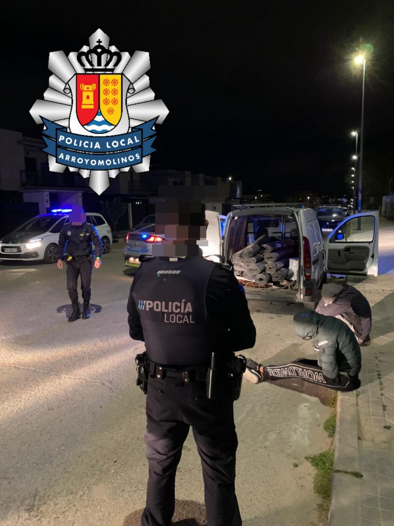Agentes de la Policía Local de Arroyomolinos han detenido a dos personas, acusadas de robar diverso material de construcción, en una obra que se está ejecutando en la calle Gandía.