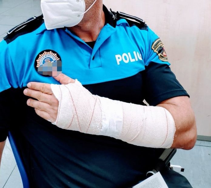 En el momento de la detención, según fuentes policiales, uno de los agentes resultó herido en su brazo, cuando intentaba reducir al individuo. En este momento se recupera de sus heridas.