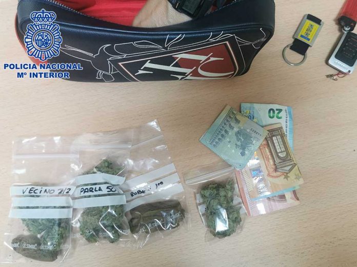 Después de su arresto, los agentes se incautaron de un total de 135 gramos de marihuana y de otros 25 gramos de hachís. La sustancia se encontraba en diversas bolsas que «estaban etiquetadas para su distribución a los clientes», según las mismas fuentes.