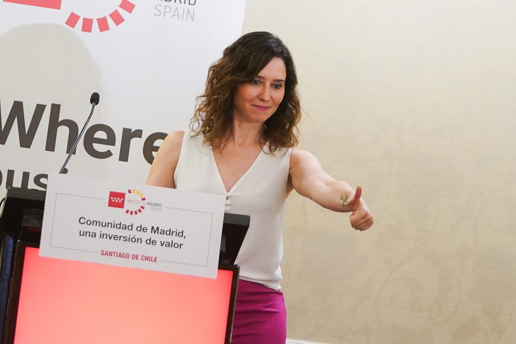 El día 23 de marzo, en su segunda jornada en tierras chilenas, Isabel Díaz Ayuso participó en un desayuno informativo en la capital, Santiago de Chile, organizado por Invest in Madrid, la oficina regional para la promoción y atracción de la inversión extranjera.