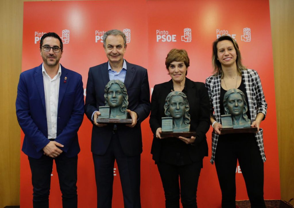 El PSOE de Pinto entregó este 15 de marzo sus premios a la igualdad 2019, unos galardones que han recaído en tres personajes que han destacado en sus respectivos campos por su lucha por una sociedad más igualitaria. El expresidente José Luis Rodríguez Zapatero, la actriz Anabel Alonso y la futbolista Patricia ‘Patri’ Chamorro.