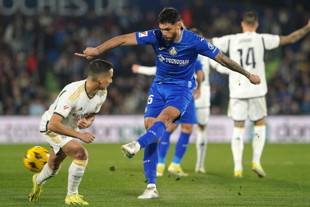 De nuevo con esa sensación de comodidad, el conjunto blanco salvó la presión del rival, se fue por la banda derecha con Lucas Vázquez y el remate de cabeza de Joselu fue mucho mejor que la indecisión del central y del portero. Sin robar un balón ni tampoco tener profundidad en el ataque posicional, el equipo de Bordalás se fue al descanso sin probar a Lunin, ni de lejos.