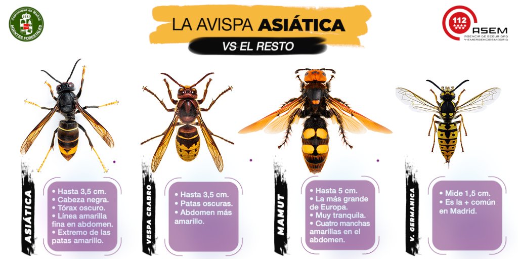 La Agencia de Seguridad y Emergencias de la Comunidad de Madrid (ASEM 112) ha informado en redes sociales que la avispa asiática no está presente en la Comunidad de Madrid, tras las llamadas que reciben, aunque aseguran que cada año son menos.