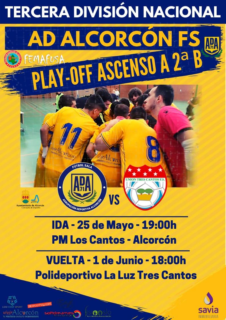 El pabellón de Los Cantos será escenario este sábado a las 19.00 horas del partido de ida del playoff de ascenso a Segunda B entre el Alcorcón FS y el Unión Tres Cantos, los dos campeones de los grupos madrileños de Tercera división y que pugnarán por conseguir una plaza en la categoría de bronce del fútbol sala nacional.