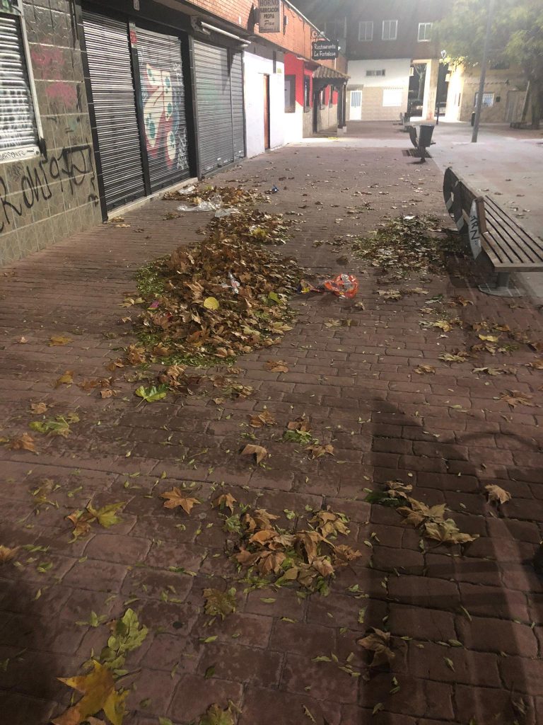 El coordinador local de IU-Humanes ve especialmente grave la situación en comercios y locales de hostelería del municipio. “Se acumulan hojas y basura en sus puertas, teniendo la clientela que esquivar para poder acceder al interior”, explica.