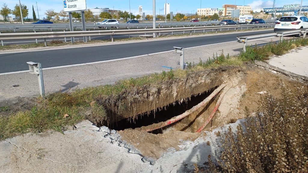 Imagen del socavón en la A-5 (foto: Ayto Leganés)