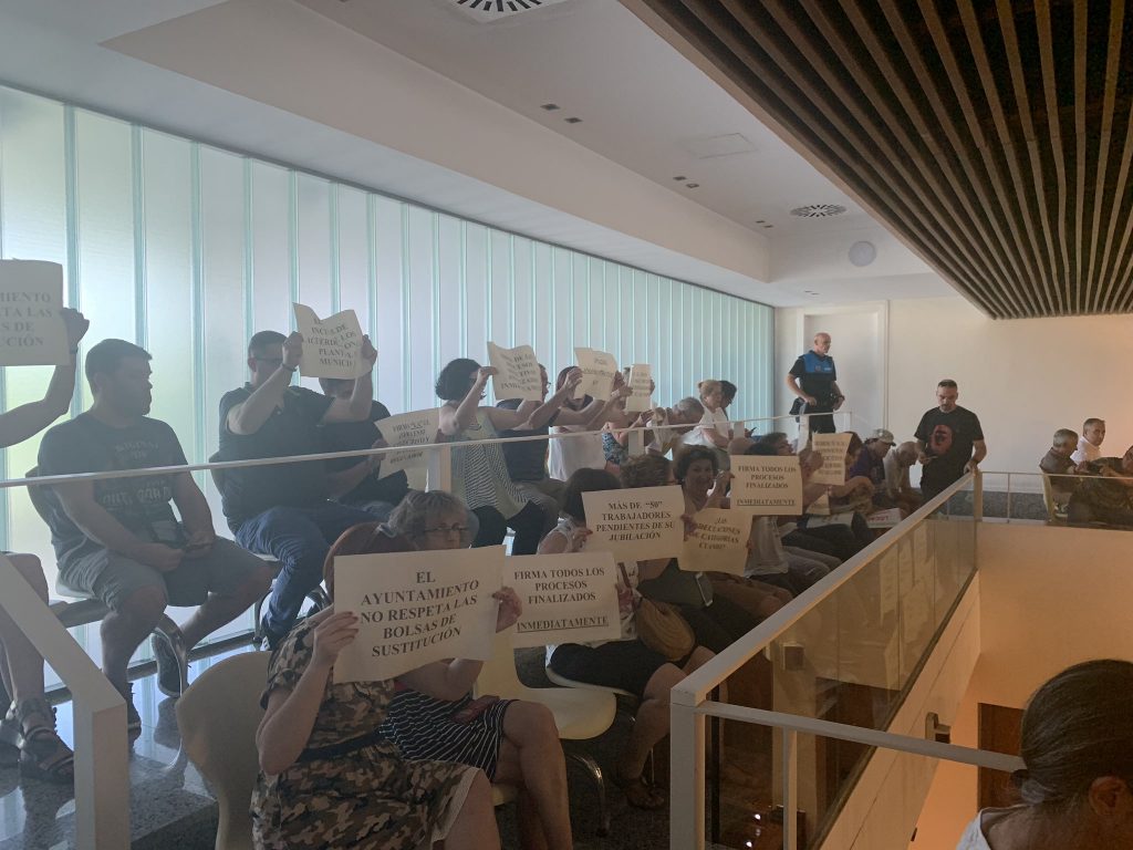 Tras una hora donde se debatieron varias modificaciones de crédito llegaron las protestas desde el público, con lo que el alcalde anunció un receso de cinco minutos a la espera de que las aguas volvieran a su cauce.