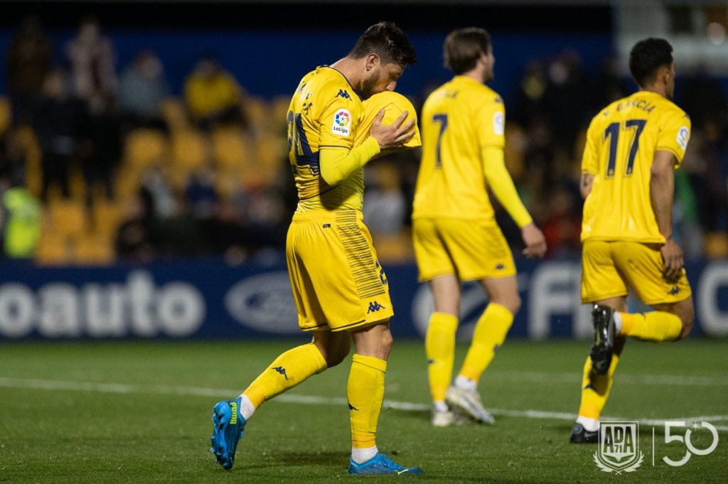 Borja Valle celebra su gol ante el Huesca (foto: AD Alcorcón)