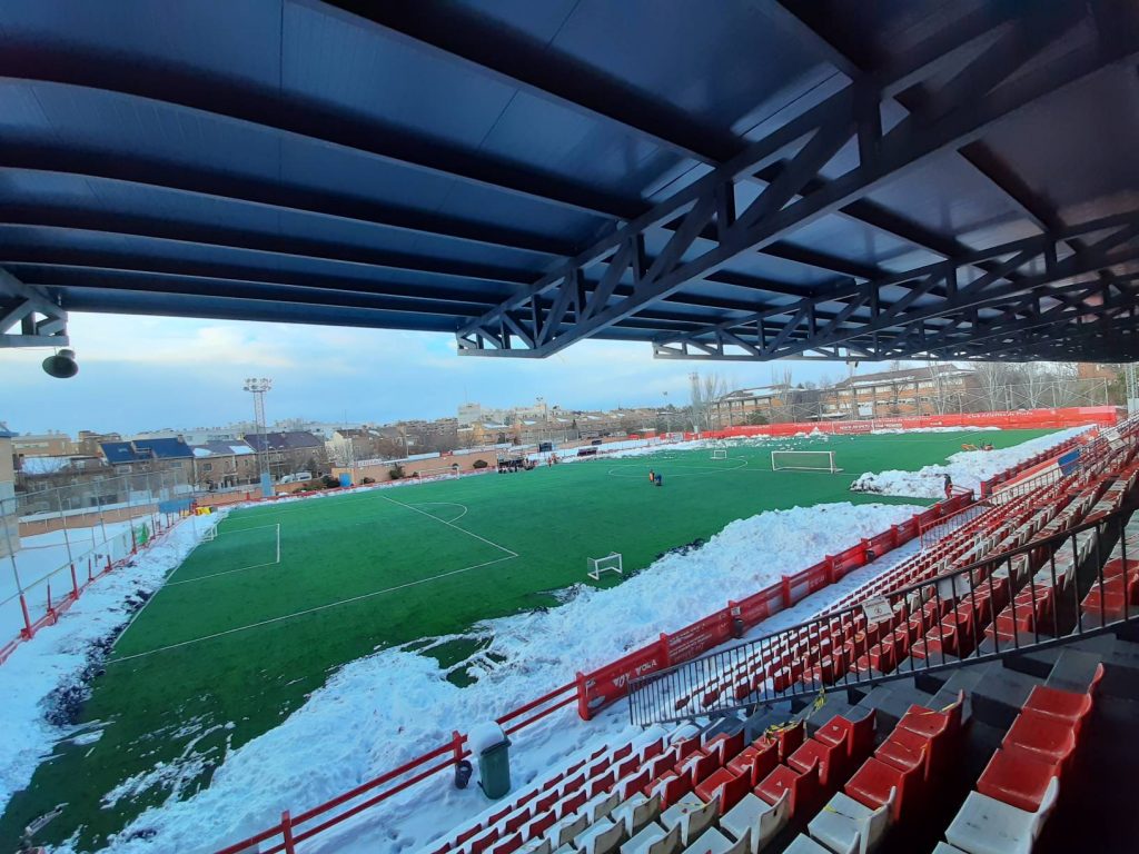 Ha costado lo suyo, pero el Atlético de Pinto ha logrado por fin despejar en su práctica totalidad el manto de nieve que cubría el terreno de juego del Amelia del Castillo. Y lo ha hecho en un espacio de tiempo más corto del que se esperaba equiparándose en este apartado a clubes como el Real Madrid, el Atlético de Madrid o el Getafe.
