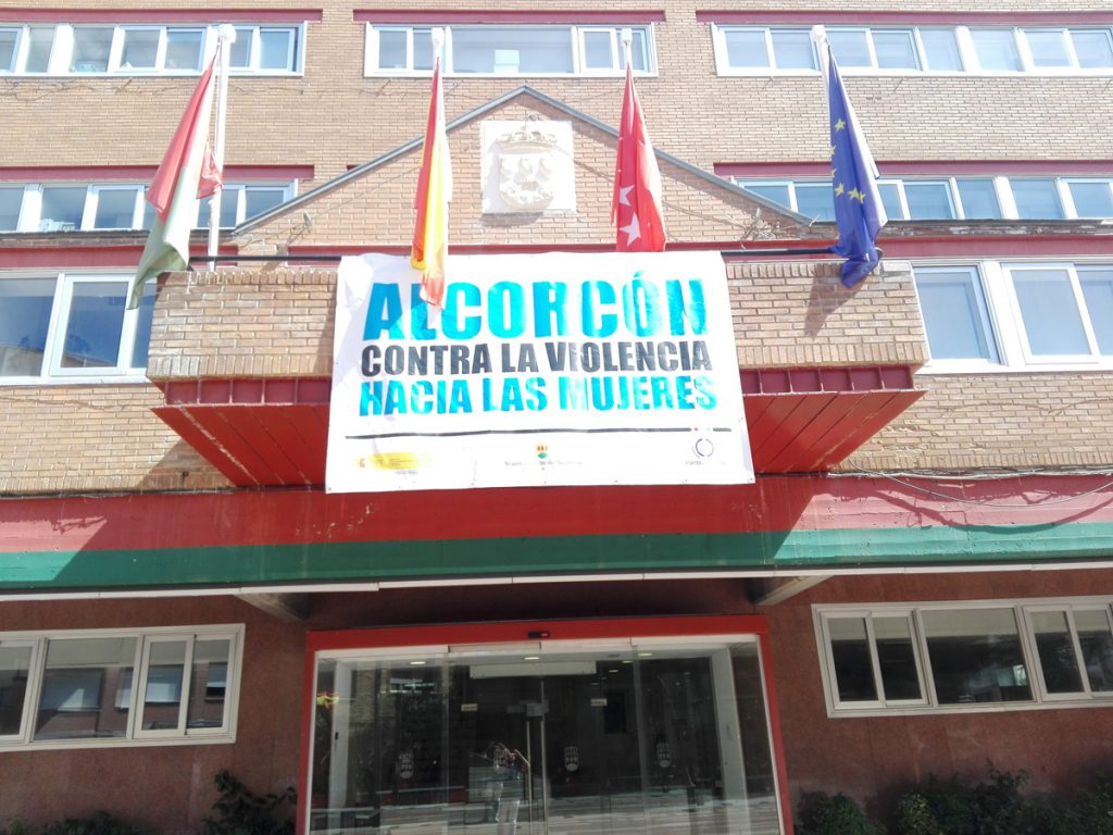 El Ayuntamiento de Alcorcón luce una pancarta contra la violencia hacia las mujeres
