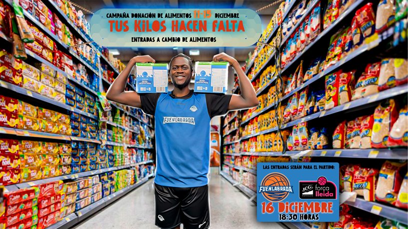 El Baloncesto Fuenlabrada lanza una nueva campaña solidaria y ofrece entradas para el partido que disputará el sábado 16 de diciembre frente al IGC Força Lleida (pabellón Fernando Martín, 18:30 horas) a quien done alimentos para las personas más necesitadas.