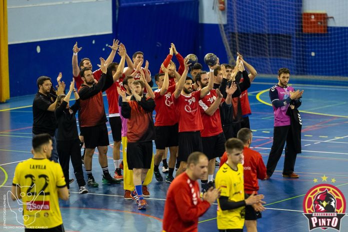 La solidez del colectivo rojinegro es incuestionable, tal y como pudo comprobarse una vez más frente al BM Soria, un conjunto que visitó Pinto en un gran momento de forma y que al descanso ganaba por 7-9. “Fue un partido muy duro”, relataba Roberto Feital, uno de los jugadores más destacados del conjunto pinteño a la conclusión del encuentro, “porque al descanso íbamos perdiendo debido sobre todo a errores nuestros, pero en la segunda mitad fuimos capaces de remontar gracias a nuestra dura defensa y a que no fallamos en ataque”.