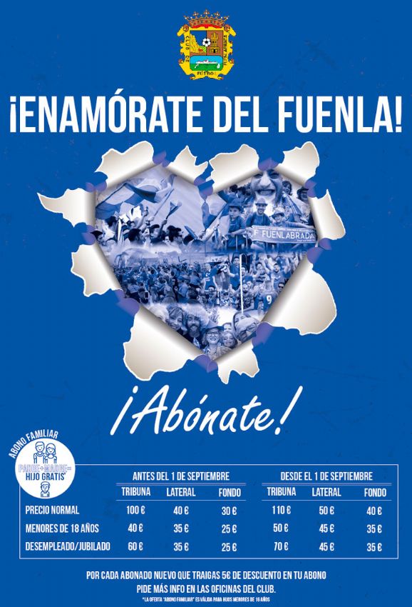 Con este original reclamo el club fuenlabreño confía en que la afición se enganche al nuevo proyecto. Los precios se mantienen con respecto a la temporada anterior y van desde los 30 euros de los fondos, pasando por los 40 de la grada lateral, hasta los 100 de tribuna. En el caso de los menores de 18 años el coste es de 25, 35 y 40 euros para cada una de las gradas mencionadas anteriormente.