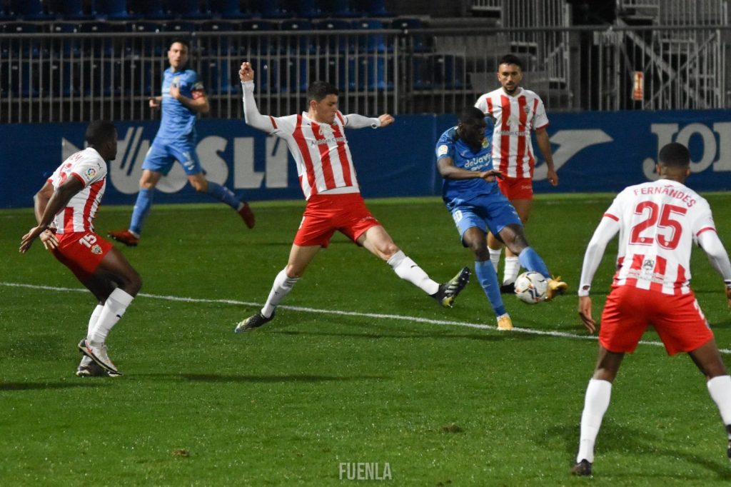 Todo hacía indicar que los tres puntos se quedarían en el Fernando Torres, pero el Almería logró encontrar un único resquicio en la zaga fuenlabreña para establecer el empate definitivo por medio de Fran Villalba, cuyo remate superó a Belman tras tocar en Pulido.
