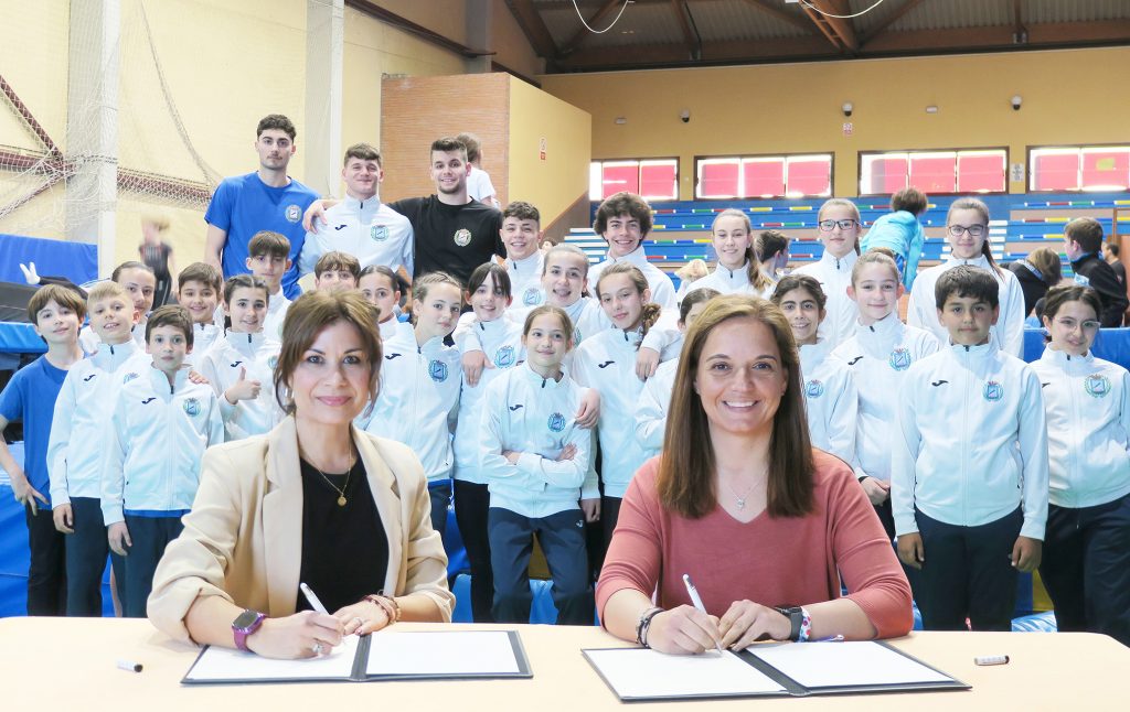 La alcaldesa de Getafe, Sara Hernández, y la presidenta del Club Gimnástico Getafe, Silvia Tamaral, han firmado un nuevo convenio de colaboración en el que se ratifica el futuro traslado de la entidad al nuevo polideportivo de San Isidro.