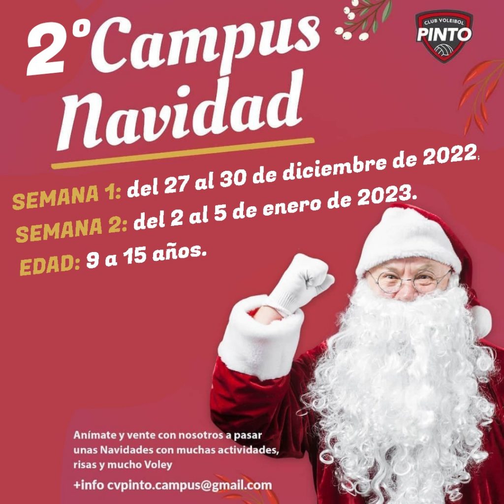 El Club Voleibol Pinto ha convocado su 2º Campus de Tecnificación de Navidad, que se llevará a cabo en dos turnos diferentes: el primero será del 27 al 30 de diciembre de 2022, mientras que el segundo tendrá lugar del 2 al 5 de enero de 2023. En ambos casos se desarrollarán en el pabellón Príncipes de Asturias.
