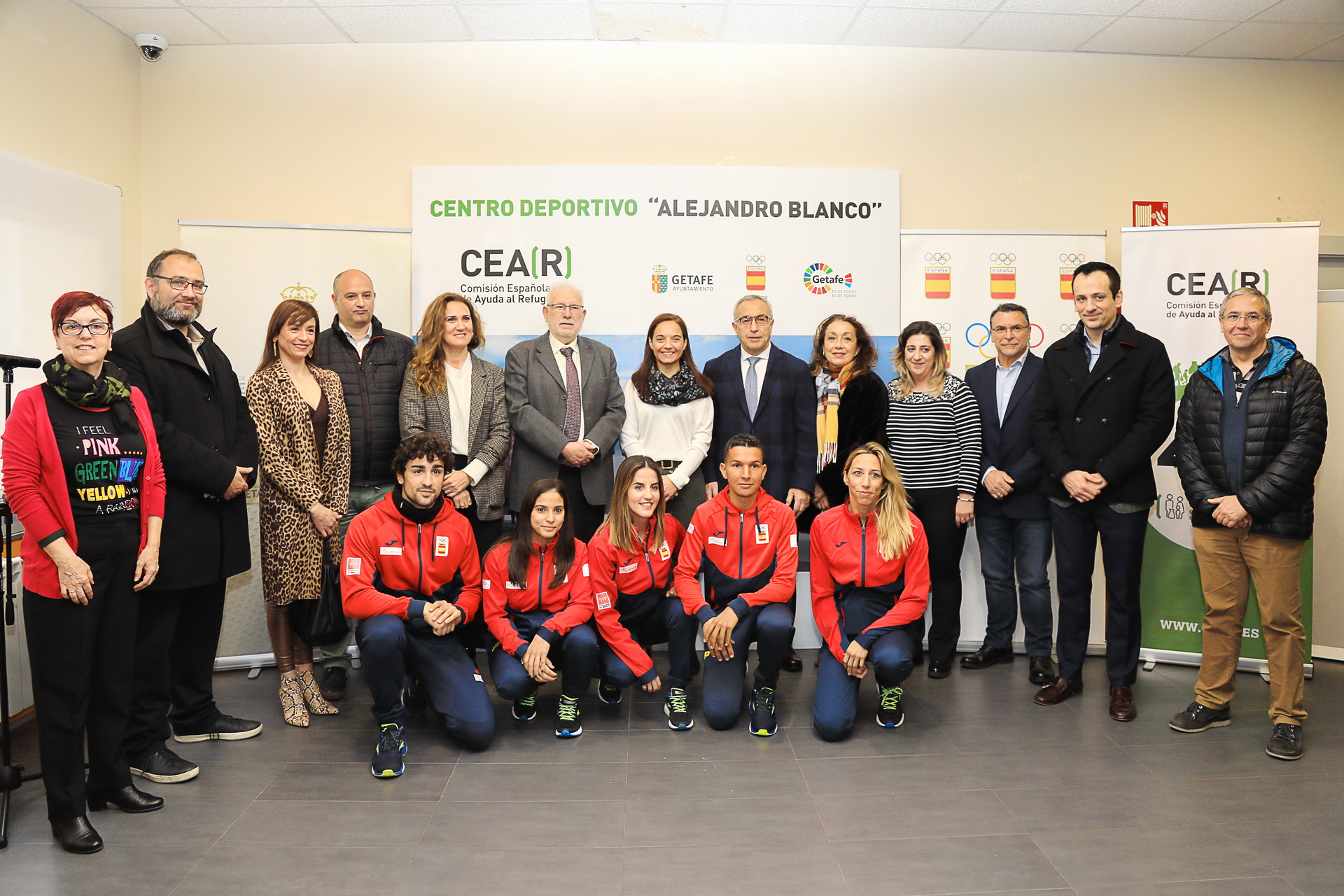 El presidente del Comité Olímpico Español (COE), Alejandro Blanco; el presidente de la Comisión Española de Ayuda al Refugiado (CEAR), Carlos Berzosa; y la alcaldesa de Getafe, Sara Hernández, han presentado este jueves el proyecto de construcción de un centro deportivo para los refugiados del CEAR de Getafe que estará ubicado en una parcela del barrio del Sector 3 y llevará el nombre de Alejandro Blanco.