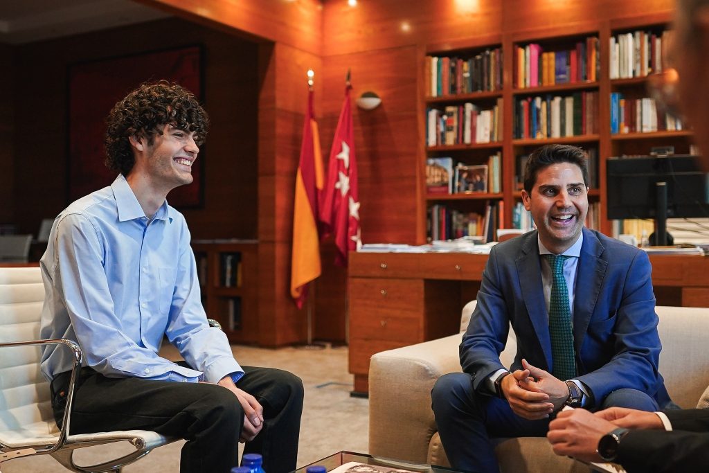 El consejero de Educación, Ciencia y Universidades de la Comunidad de Madrid, Emilio Viciana, ha recibido este viernes en la sede de la Consejería a Julio Cuenca, estudiante del instituto público de Educación Secundaria Los Castillos de Alcorcón que ha logrado la mejor nota de la región´en la pasada EvAU, con un 14 y que ha obtenido, también, un 10 en la