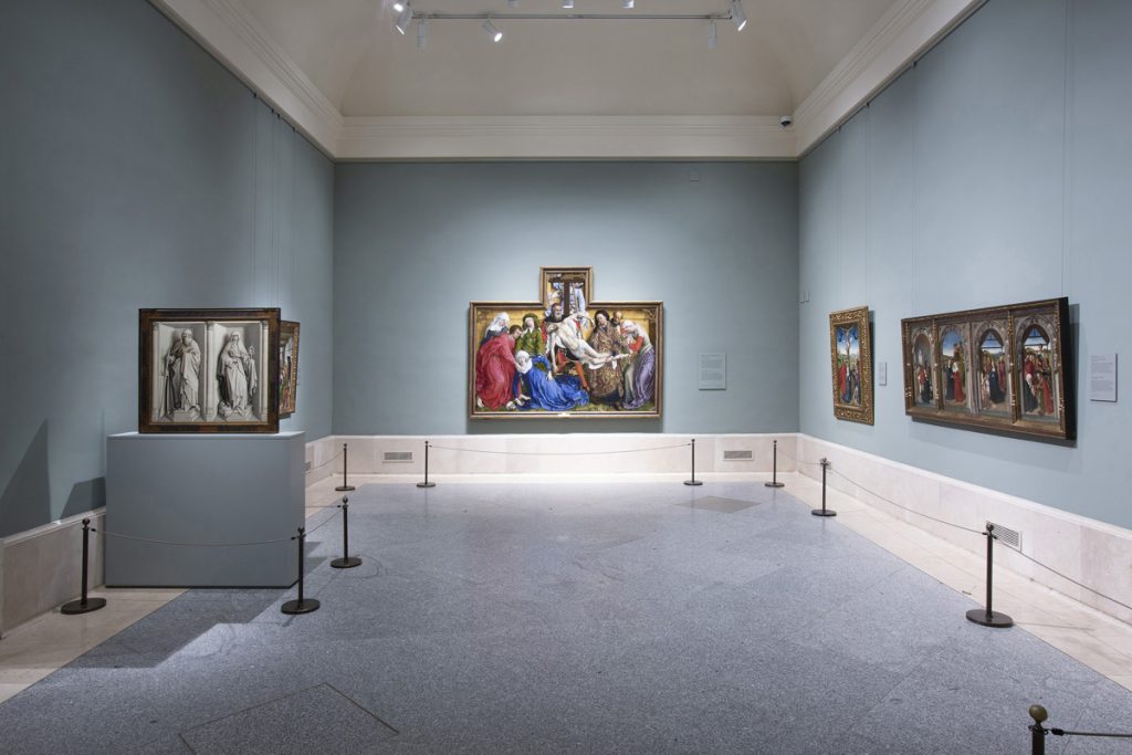 Después de un año de la inauguración de Reencuentro, el Museo Nacional del Prado recupera de manera progresiva el espacio expositivo habitual de la colección permanente. Y así desde este miércoles, 2 de junio, se puede visitar en la sala 58 El Descendimiento de Van der Weyden, junto a sus coetáneos: Robert Campin, Dirk Bouts, el Maestro de la Leyenda de Santa Catalina y una obra del círculo de Hugo van der Goes, Calvario con santos y donantes.