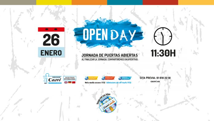 El eurocolegio CASVI (Urbanización Castillo de Villaviciosa, en avenida de Castilla, 27, Villaviciosa de Odón), celebra su jornada de puertas abiertas el sábado, 26 de enero, a las 11.30 horas y previa inscripción.