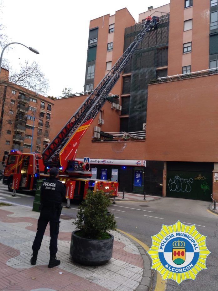 La borrasca Gloria se está haciendo notar en el sur de Madrid. Concretamente en Alcorcón, desde el domingo y a lo largo de este lunes, la Policía Local junto a los Bomberos de la ciudad han tenido que intervenir por desprendimientos en varios edificios de la ciudad provocados por las rachas de viento de más de 70 kilómetros por hora.