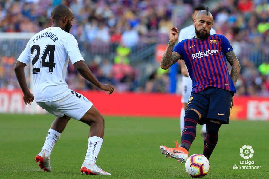 Pero ya en tramo final de la primera parte el Barcelona ha ido apareciendo en el partido y sus aproximaciones hacia el marco de Soria eran cada vez más peligrosas. En la primera se ha interpuesto a un buen disparo de Rakitic, pero en la segunda Arturo Vidal ha aprovechado un rechace del guardameta azulón para batirle desde cerca.
