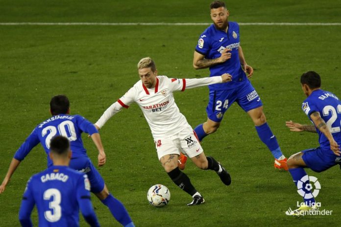 El partido ya se había calentado sobremanera en la primera mitad, cuando el colegiado anuló un tanto del propio Ocampos tras consultar la acción a instancias del VAR. El Getafe, por su parte, dispuso de un apr de buenas ocasiones de Maksimovic para haberse adelantado, pero en la primera su cabezazo se marchó ligeramente desviado (20′) y en la segunda ajustó su remate a centímetros de la madera (44′).