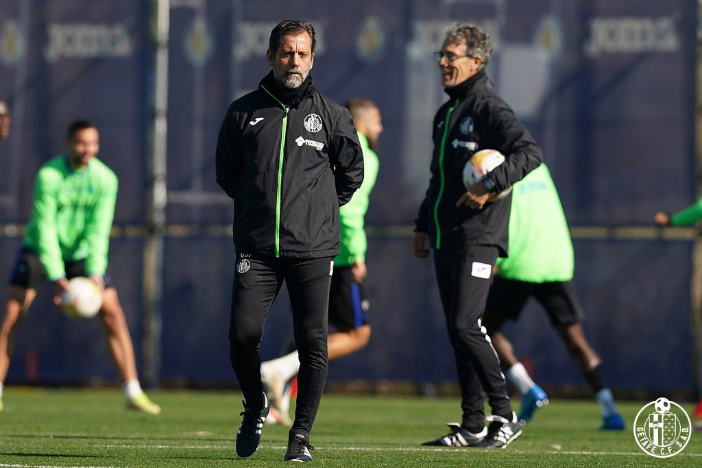 Quique da instrucciones durante un entrenamiento (foto: Getafe CF)