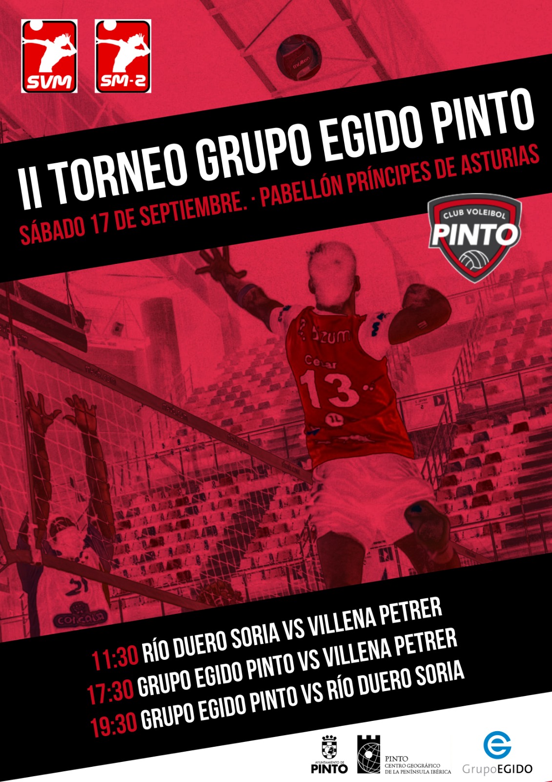 El pabellón Príncipes de Asturias será escenario este sábado 17 de septiembre del II Torneo Grupo Egido Pinto, que servirá como presentación ante sus aficionados del primer equipo del Voleibol Pinto de cara a su quinta presencia consecutiva en la Superliga masculina 2, segunda máxima competición a nivel nacional.