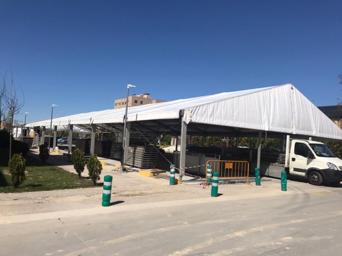 El Ayuntamiento de Fuenlabrada y el Hospital Universitario de la ciudad van a poner en marcha el hospital de campaña levantando en el parking del centro este jueves. Todo ello después de iniciarse las obras hace seis días.