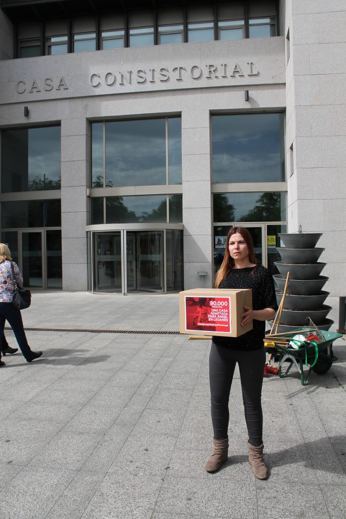 Esta madre ha luchado lo indecible para no quedarse en la calle. Recogió 90.000 firmas y acampó frente al Ayuntamiento de Leganés para ser escuchada.