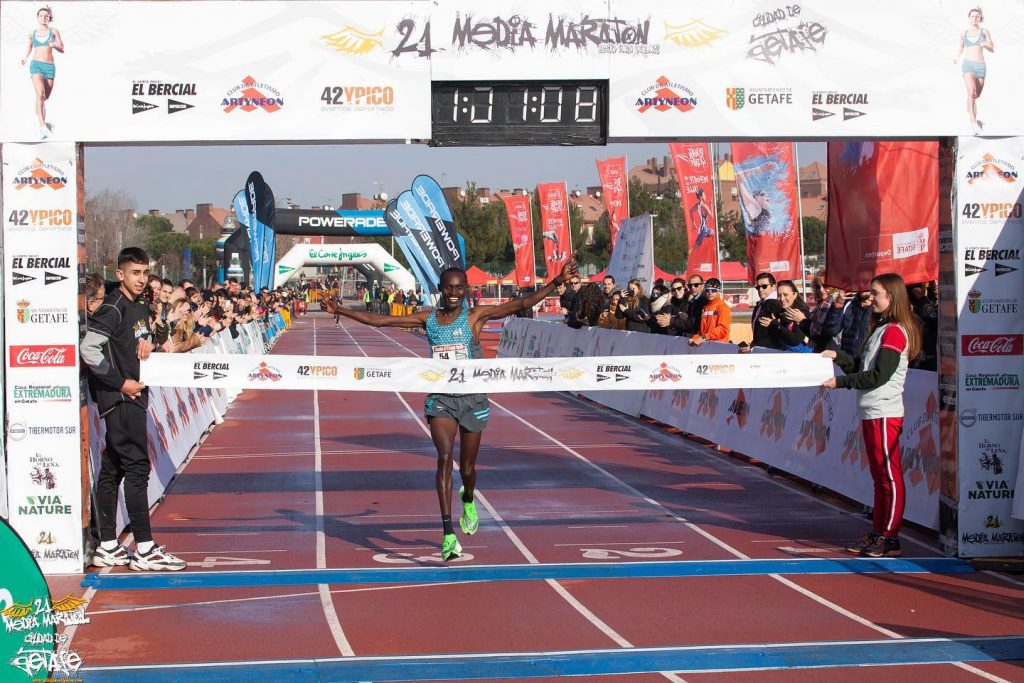 Y por otro en la parcela deportiva, ya que Vestus Chemjor pulverizó el anterior registro de la prueba. El keniata completó la distancia en un tiempo de 1.01.08 (a 2,53 minutos el kilómetros) confirmando las bondades del circuito getafense, sin duda uno de los más rápidos del país. Otros dos compatriotas suyos completaron el podio siendo segundo Hosea Kiplimo (1.01.21) y tercero Edwin Kipruto (1.03.03). Los tres habían confirmado su participación pocos días antes de la prueba y justificaron su favoritismo al triunfo final.