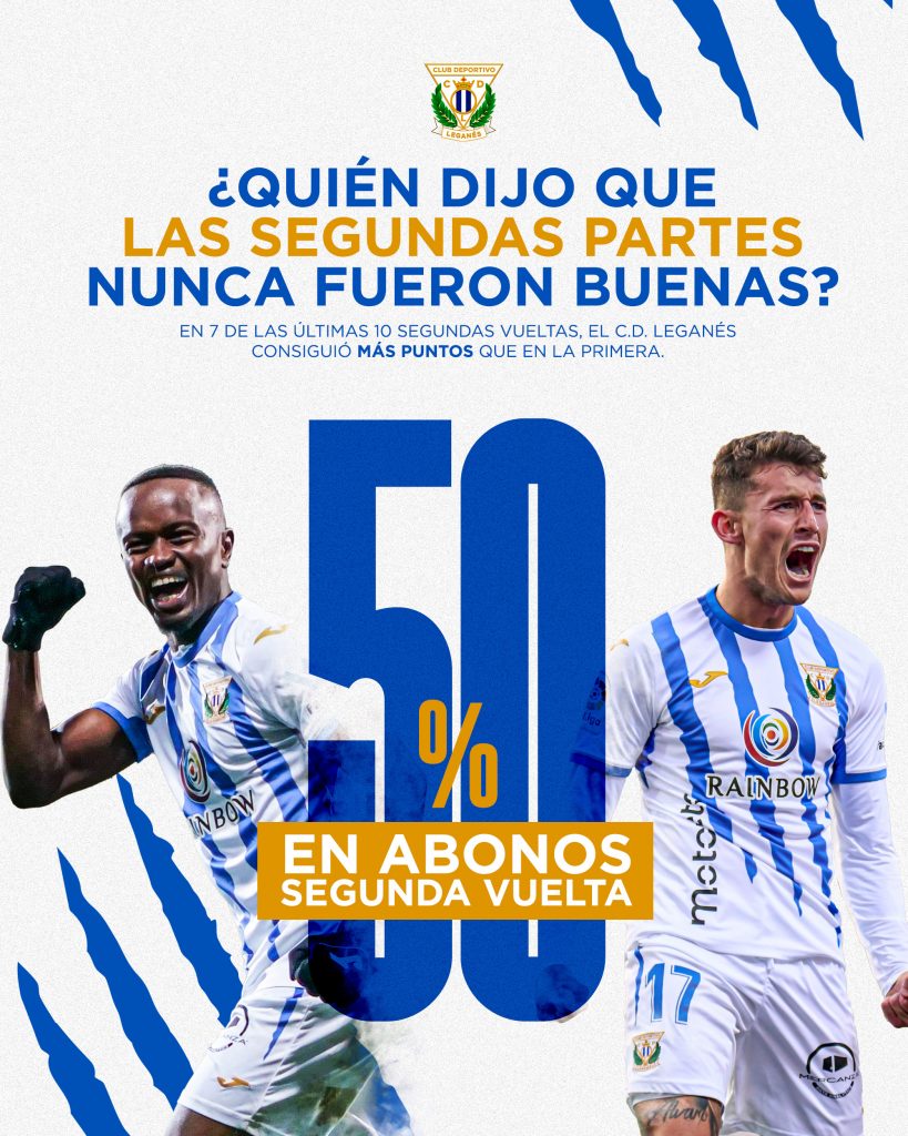El CD Leganés ha puesto en marcha desde este miércoles su campaña de abonos para la segunda vuelta de la competición, que ofrece como principal reclamo la posibilidad de obtener el carné con un descuento del 50% para todas las gradas del estadio, excepto la zona VIP.