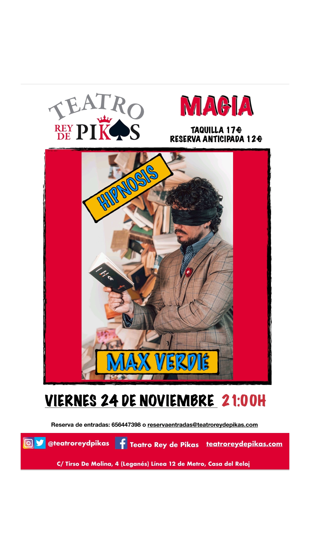Un fin de semana más, el Teatro Rey de Pikas de Leganés vuelve a traer la mejor magia al Sur de Madrid. En este caso, Max Verdié, mago mentalista e hipnotizador de espectáculo, trae su show La vida es sueño el viernes 24 de noviembre a las 21:00 horas.