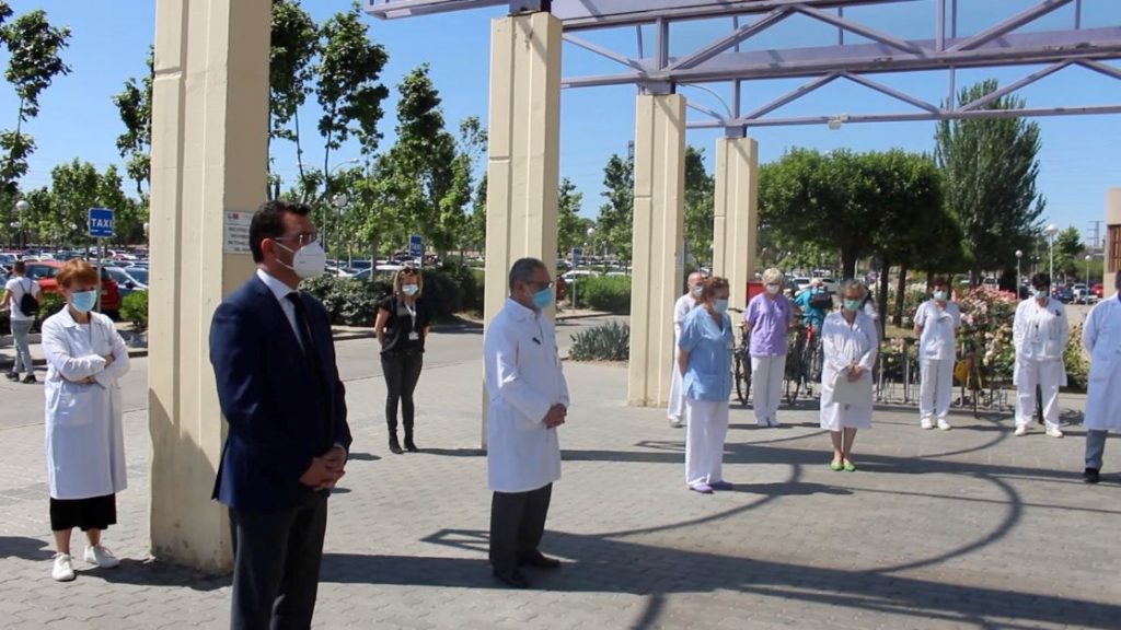 El portavoz popular, que ha guardado el minuto de silencio a las 12 del mediodía frente a las puertas del centro hospitalario junto a profesionales sanitarios y equipo directivo, ha agradecido a todos su “enorme entrega y generosidad” y su “gran esfuerzo por salvar vidas” en esta crisis del coronavirus.
