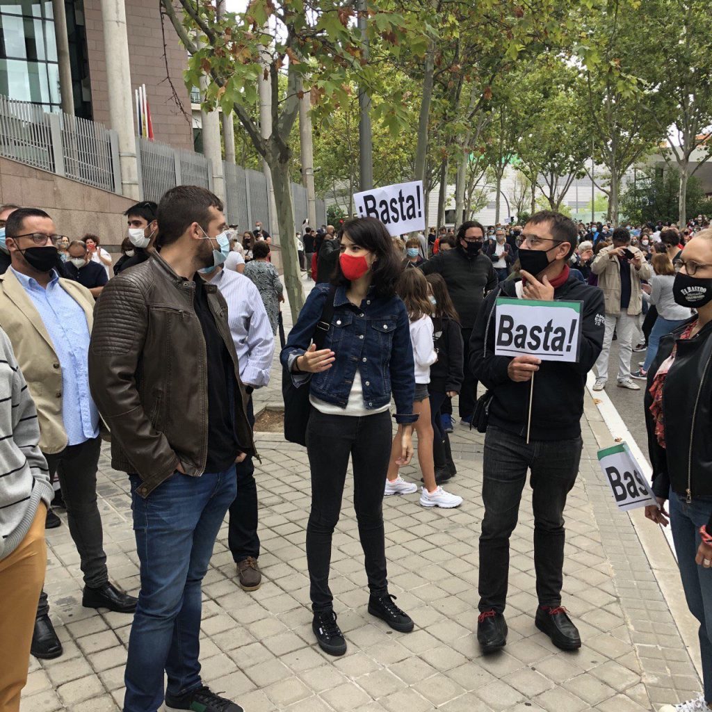 «Hoy he estado junto con Isa Serra, Monedero y otras compañeras concentrado ante a la Asamblea de Madrid, respetando estrictamente las medidas de seguridad. Frente a su segregación, respondemos: más atención primaria y más medios para los barrios», ha dicho Santos.