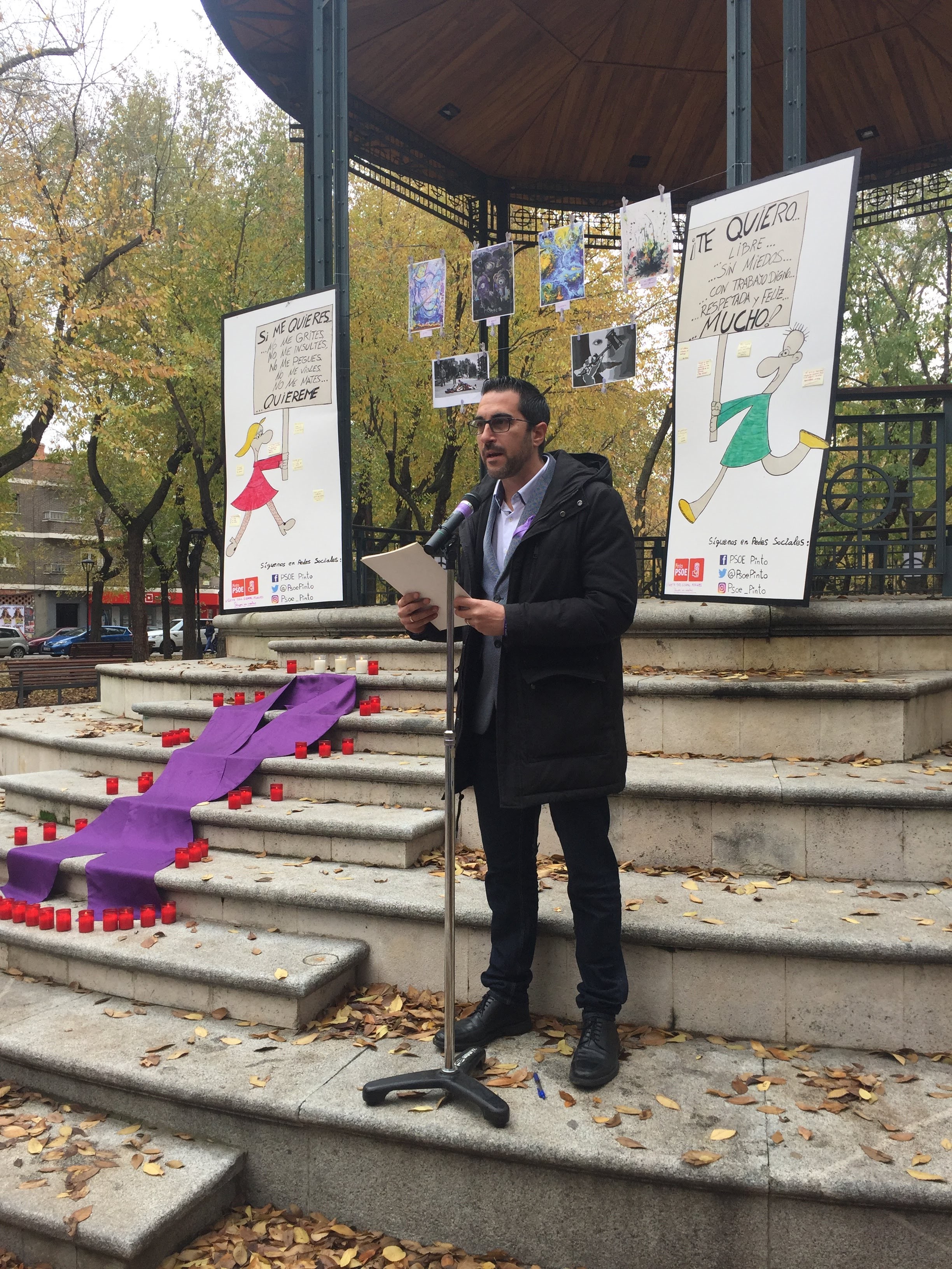 El acto conducido por Lola Rodríguez, vicesecretaria de la agrupación socialista de Pinto, se inició con la lectura del manifiesto del PSOE-Madrid contra la violencia de género, leído por Lorena Morales, secretaria de Igualdad del PSOE-Madrid y concejala de Pinto. A continuación Diego Ortiz, secretario general de los socialistas pinteños, procedió a encender la última vela de las colocadas -una por cada víctima- en torno al lazo morado colocado en el templete del Egido.