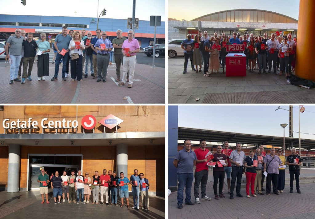 Concejales, militantes y alcaldes del PSOE de Getafe, Alcorcón, Fuenlabrada o Leganés se han movilizado durante la mañana de este 1 de septiembre, en las distintas estaciones centrales de Cercanías, para informar a los vecinos de las respectivas ciudades, de las medidas sobre el transporte que han entrado en vigor este 1 de septiembre.