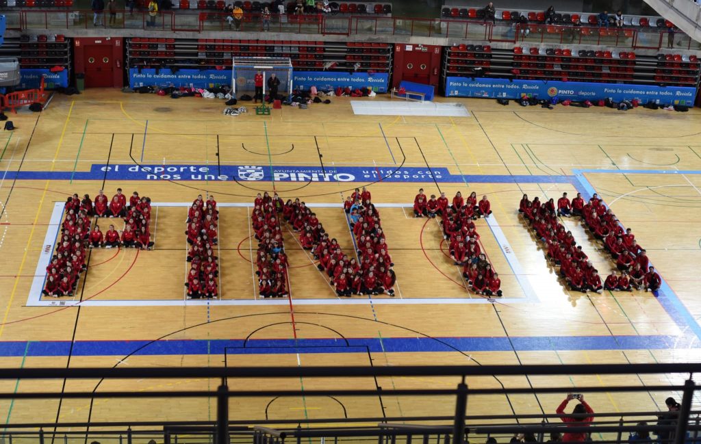 El fotógrafo, Iván Atance, se encargó de organizar todos los pormenores de la histórica instantánea, en la que los dos centenares de participantes -ataviados con la equipación del club- se distribuyeron sobre la cancha del pabellón Príncipes de Asturias formando la palabra PINTO y propiciando una original imagen.