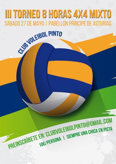 El próximo sábado 27 de mayo tendrá lugar el III Torneo 4×4 del Voley Pinto, que al igual que ocurrió con las dos ediciones anteriores sirve para echar el cierre a la temporada en pista cubierta. El evento tendrá como escenario el pabellón Príncipes de Asturias y el éxito de convocatoria está asegurado porque ya están prácticamente agotadas todas las plazas disponibles para el torneo, que se disputa en categoría absoluta aunque también se admiten juveniles.