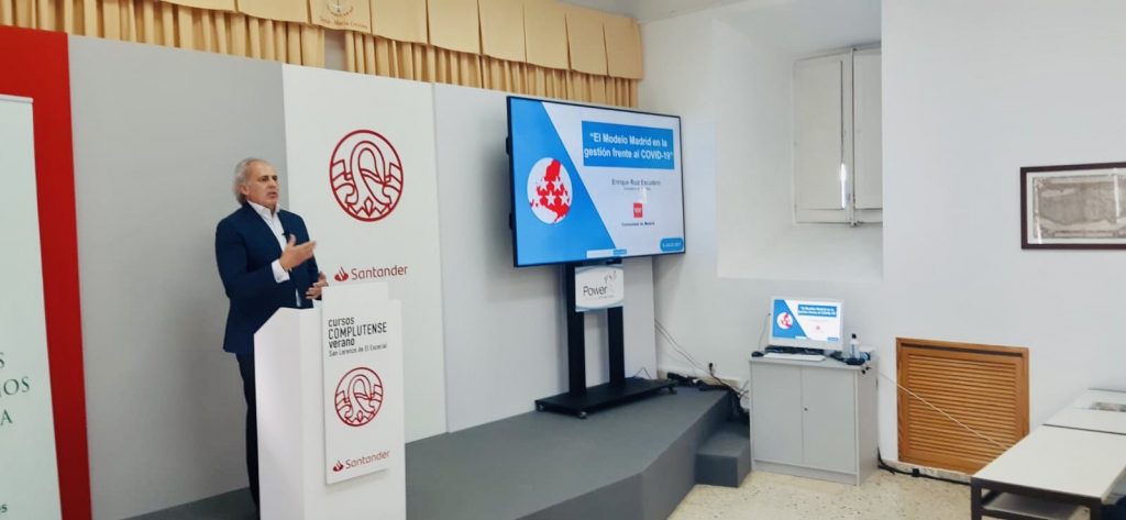 «Eso no quita que nosotros estemos en vigilancia», ha precisado no obstante durante su intervención en los cursos de verano de la Universidad Complutense de Madrid, donde ha intervenido en el curso sobre ‘El modelo Madrid en la gestión frente al Covid-19’, en el curso Epidemias, zoonosis y pandemias. Una visión holística ‘One Health’.