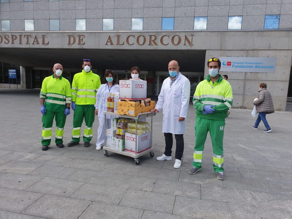 Aparte de sus tareas de limpieza, en las últimas semanas, trabajadores de ESMASA han ayudado a los vecinos en otras labores, como trasladando material y alimentos al Hospital de Alcorcón. Algo que, por ejemplo, tuvo lugar el pasado 28 de abril.
