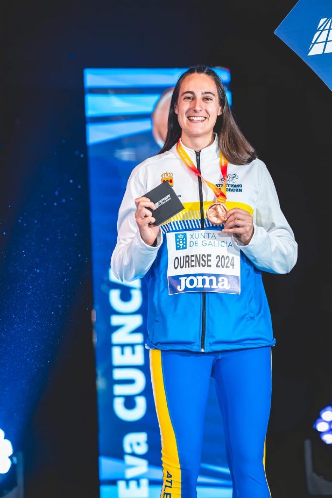 Eva Cuenca posa con la medalla de bronce (foto: Atletismo Alcorcón)