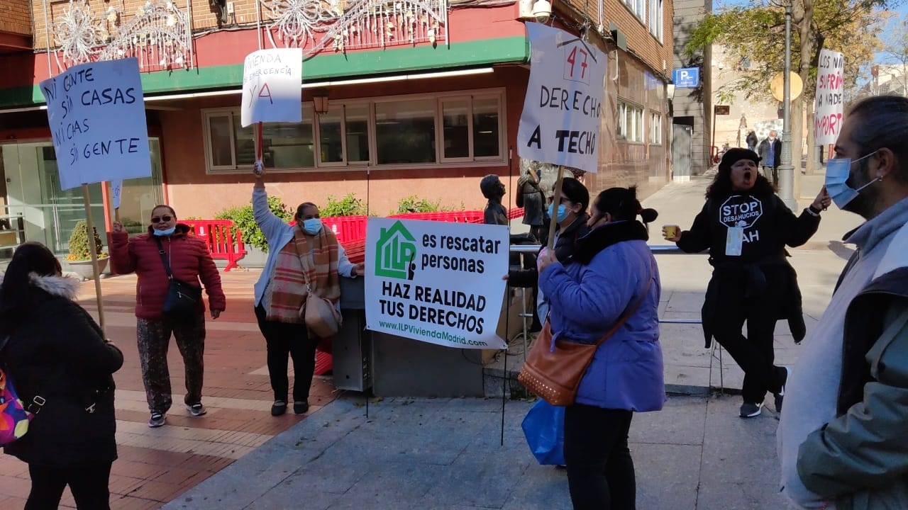 La Plataforma Stop Desahucios de Alcorcón protagonizó este lunes una concentración frente al Ayuntamiento, instando al Gobierno municipal de PSOE y Podemos de dar una solución habitacional, a una vecina de la ciudad.