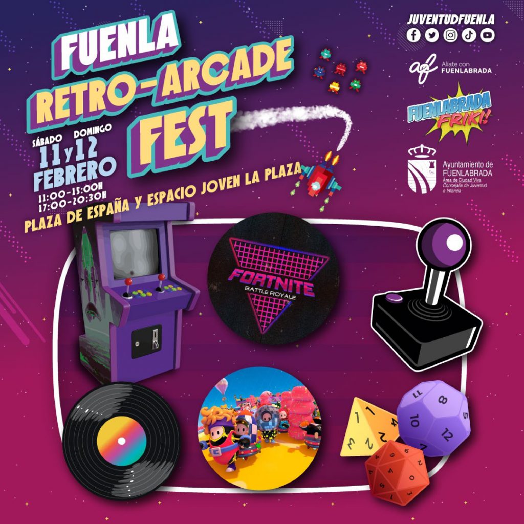Fuenla Retro-Arcade Fest llega este fin de semana a Fuenlabrada para transportar a sus visitantes a las décadas de los 80, 90 y 2000. Máquinas y consolas de videojuegos antiguas y actuales, espectáculos, exposiciones, juegos de mesa y música con los éxitos del momento es lo que ofrece esta nueva propuesta de la delegación de Juventud e Infancia dirigida al público adolescente y juvenil.