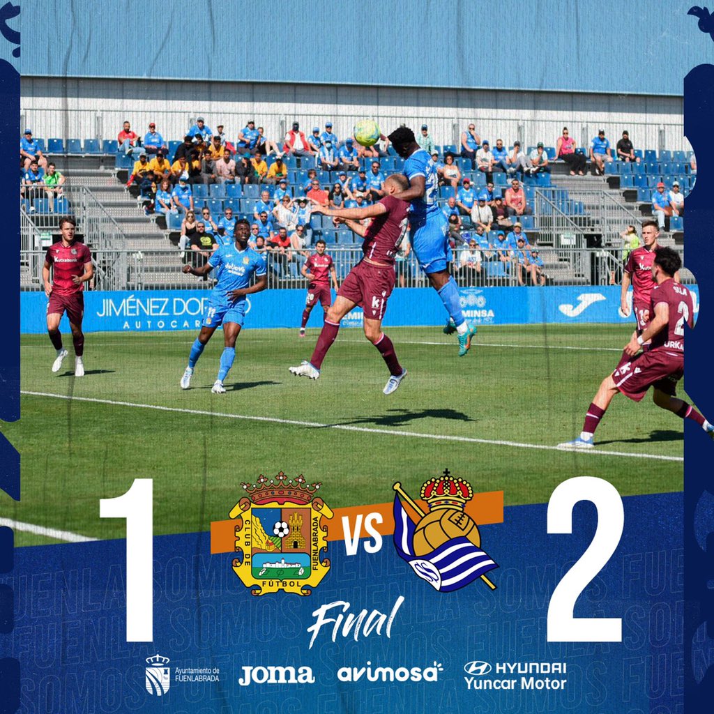 Los fuenlabreños vieron como la Real les remontaba con dos goles de Alkain, el primero, en el minuto 63, y ya en tiempo de descuento, un tanto de Sola certificaba el descenso del ‘Fuenla’ de Sandoval, que acabado el partido reconocía que «no hemos estado a la altura».