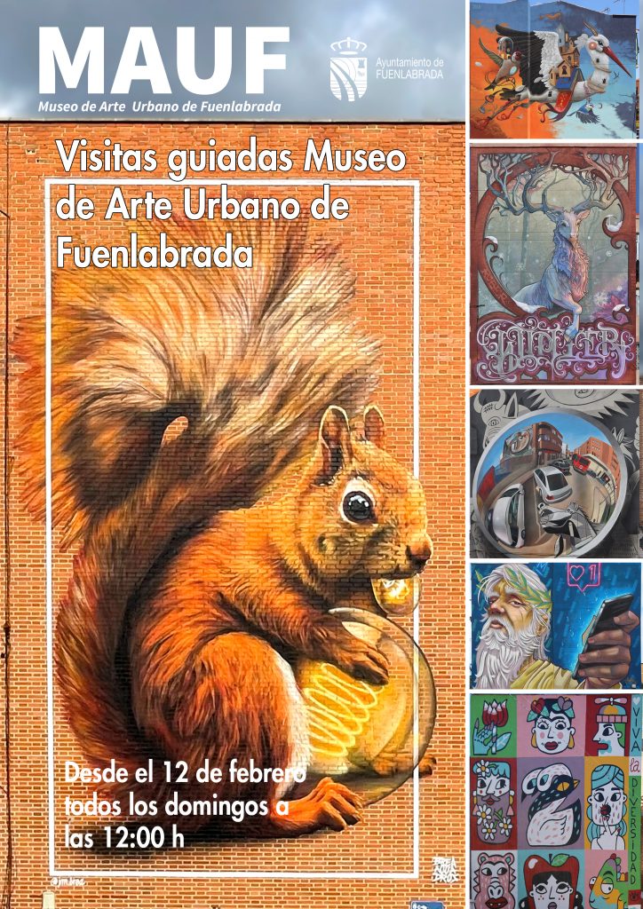 Todos los domingos, a partir del 12 de febrero, el Ayuntamiento de Fuenlabrada organizará visitas guiadas para conocer la veintena de murales que conforman el Museo de Arte Urbano de la ciudad, pintados en las fachadas de edificios por reconocidos artistas nacionales e internacionales.
