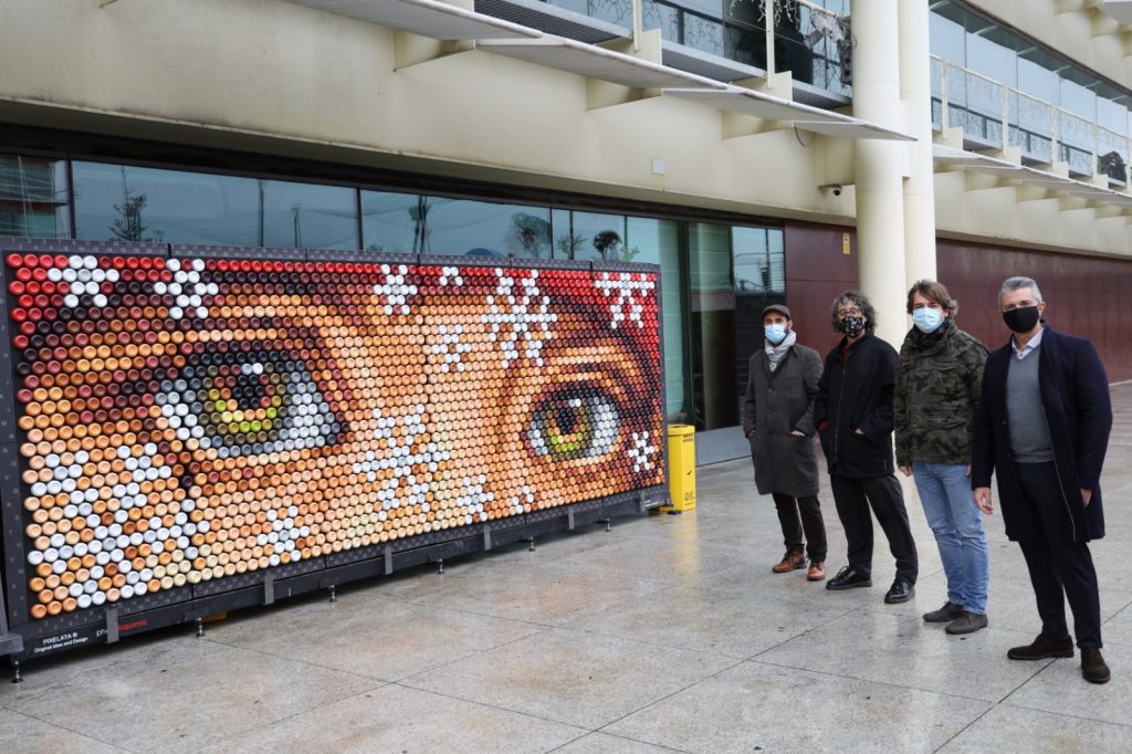 Esta singular pieza colaborativa de arte urbano se ha instalado en la plaza de la Constitución, donde permanecerá durante todas las Navidades. Se llama ‘Ilusión’ y representa la mirada de un niño en éstos días en los que la infancia es la protagonista.